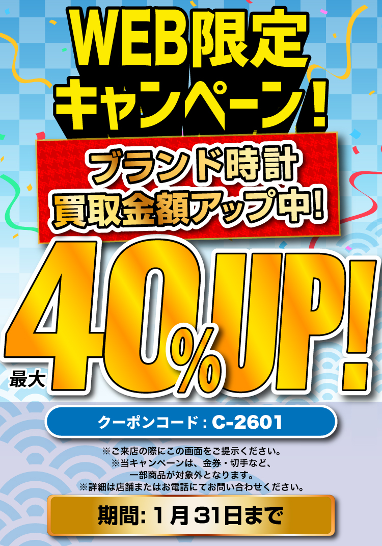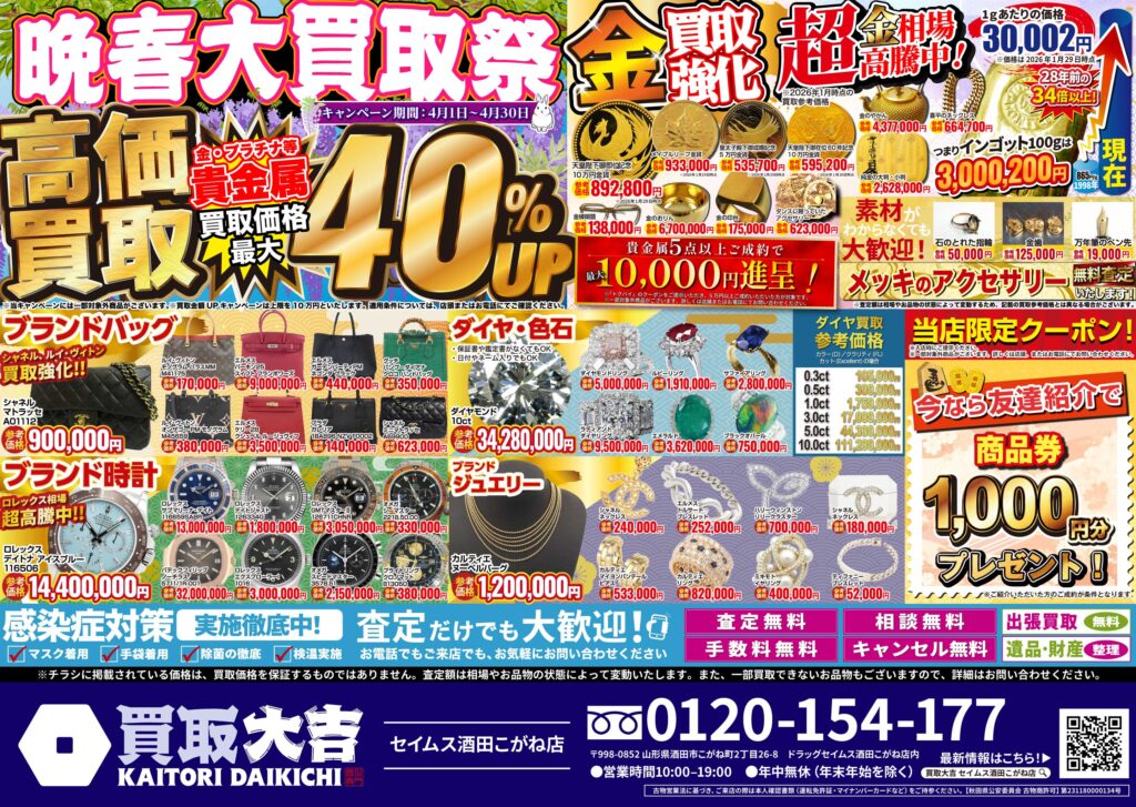 キャンペーン実施店舗 よくあるご質問 買取価格は主にどんな要素から決まるのでしょうか? お品物の状態や付属品の有無、最新相場、流通量などによって買取価格を算出します。 どんなものを買い取ってもらえますか? 金・貴金属・ブランド品はもちろん、お値段がつくか迷われているものも是非お持ちください。 傷や汚れのあるアイテムでも買取可能ですか? 大歓迎です。未使用品などのお持ち込みは少なく、傷や汚れのあるアイテムをお持ちいただく方が半数以上です。状態の悪いお品物やカビなどがあってもお買取可能なケースもございます。 どんな情報があればすぐに査定額を教えてもらえますか? お品物の名前や種類、状態、またはブランド名、型番などの情報があると、概ねの査定額をお伝えできるかと思います。 店舗での査定時間はどのくらいですか? お品物の種類や個数にもよりますが、約5分から30分ほどの査定時間となるケースが多いです。事前にある程度の査定時間をお伝えいたしますので、ご安心ください。